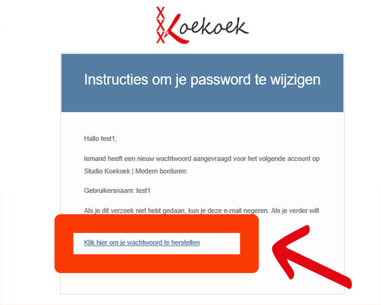 Klik in de e-mail op ‘Klik hier om je wachtwoord opnieuw in te stellen’. Er opent een nieuw scherm in je internetbrowser.