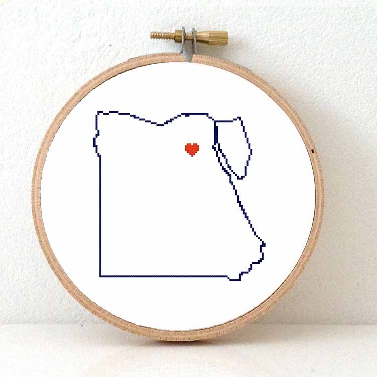 Egypte kaart kruissteek patroon. Dit moderne kruissteek patroon toont de kaart van Egypte, met een hart voor de hoofdstad: Caïro. Combineer met andere kaarten uit onze Stitch a Map collectie. Laat de wereld zien waar je allemaal geweest bent! Creëer een origineel cadeau voor een vriend die emigreert of een internationale bruiloft.