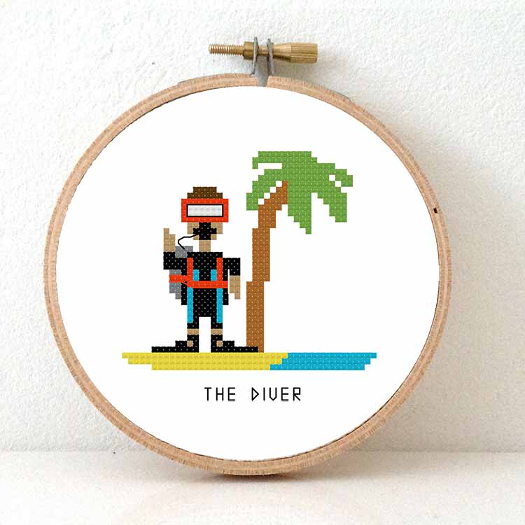 Bij dit artikel ontvang je twee duiker kruissteek patronen. Het bevat een mannelijke en vrouwelijke versie. Je kan hem/haar onder het duikpak niet goed zien, maar vertrouw er maar op dat de duikers erg knap en aardig zijn! Gebruik deze patronen om een leuk cadeautje te maken voor een duikinstructeur of een diepzeeduiker.