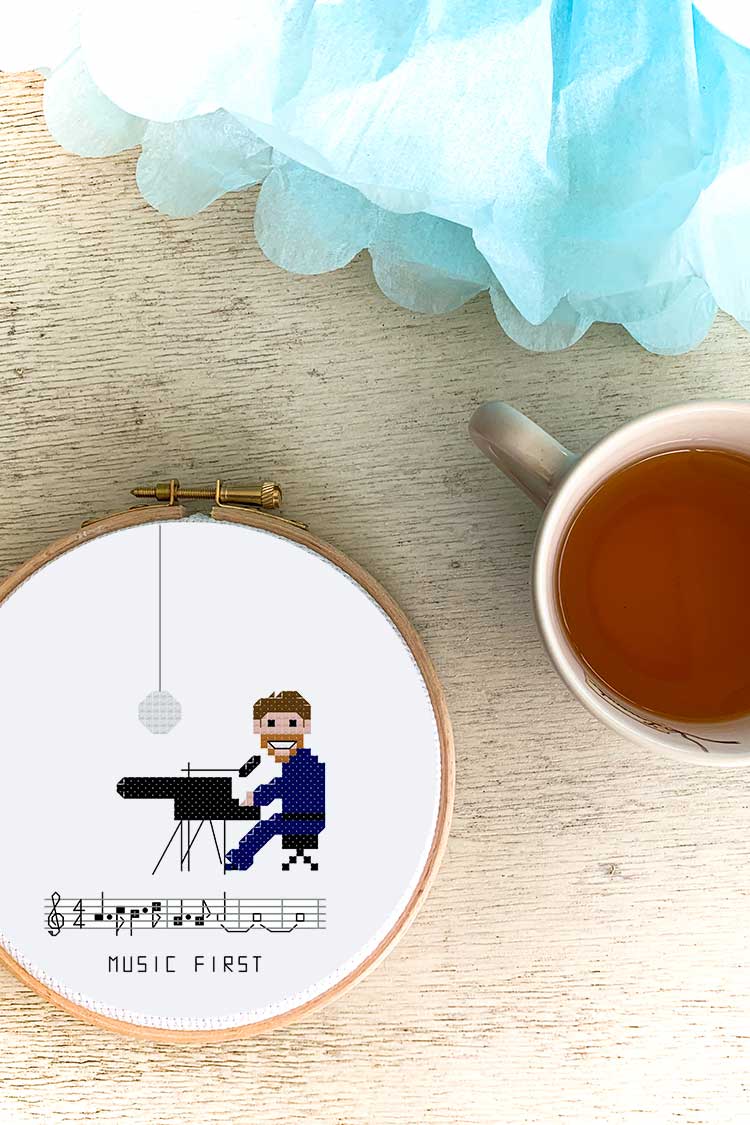 Dit patroon is geschikt voor semi-gevorderden vanwege de details van de muzieknoten. Maar het is een klein patroon, dus voor beginners een leuke uitdaging. We hebben tips voor beginners toegevoegd. Gebruikte steken: stiksteek, kruissteek, Franse knoopjes en halve kruissteek.