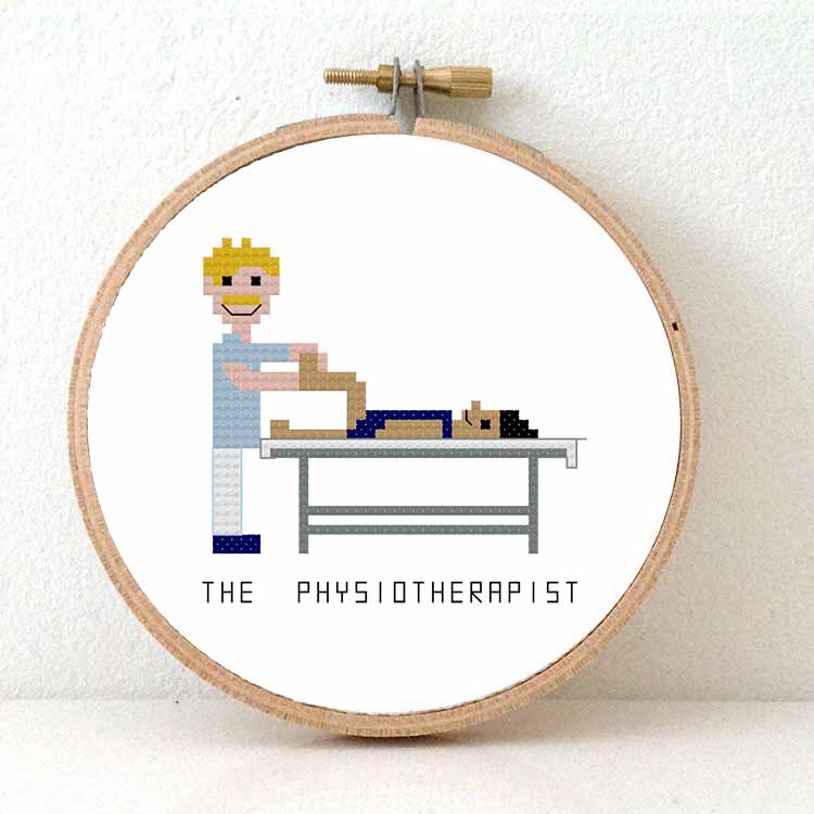 Bij dit artikel ontvang je 2 kruissteek patronen om de fysiotherapeut uit onze Stitch a Job collectie te maken. Je ontvangt het patroon voor zowel de mannelijke als de vrouwelijke fysiotherapeut. Gebruik deze patronen om een uniek cadeautje te maken voor je fysiotherapeut of revalidatiearts.