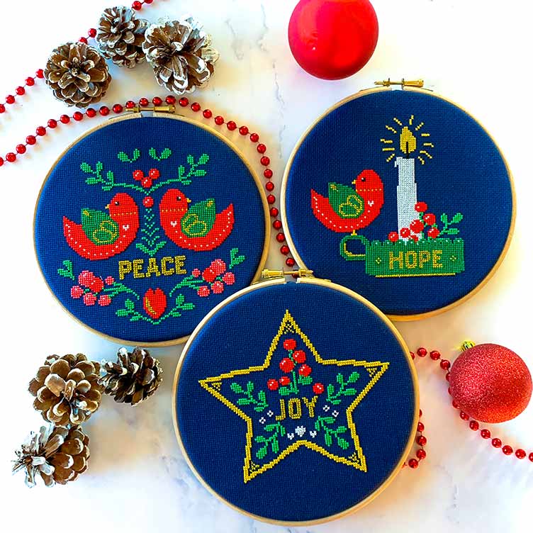 Dit is een set van 3 bij elkaar passende Kerstmis borduurpakketten om prachtige kerstdecoraties te maken. Ook leuk als met de hand gemaakt kerstcadeautje. Aan deze set voegen we een gratis blokje bijenwas toe, zodat borduren met het metallic garen een stuk makkelijker gaat.