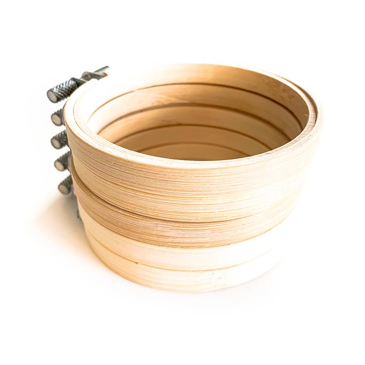 7,5 cm borduurring. Met dit artikel ontvang je een nieuwe 7,5 cm (3 inch) houten borduurring.