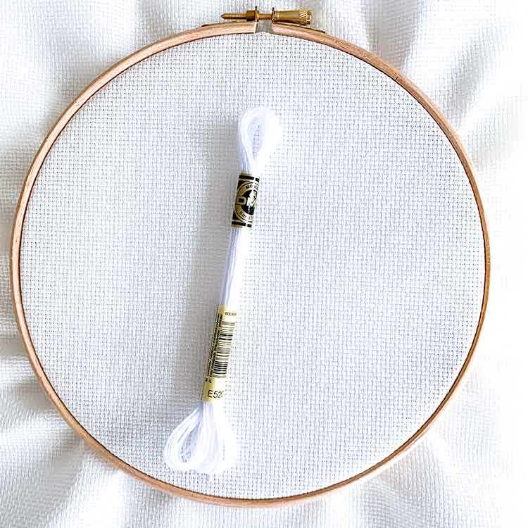 - Deze stof heeft een glinstering. Die is moeilijk vast te leggen op camera. In vergelijking met DMC E5200 is de stof wat meer ivoorkleurig. Met een DMC kleurenkaart met echt garen kun je de kleur vergelijken en bijpassende kleuren borduurgaren vinden.