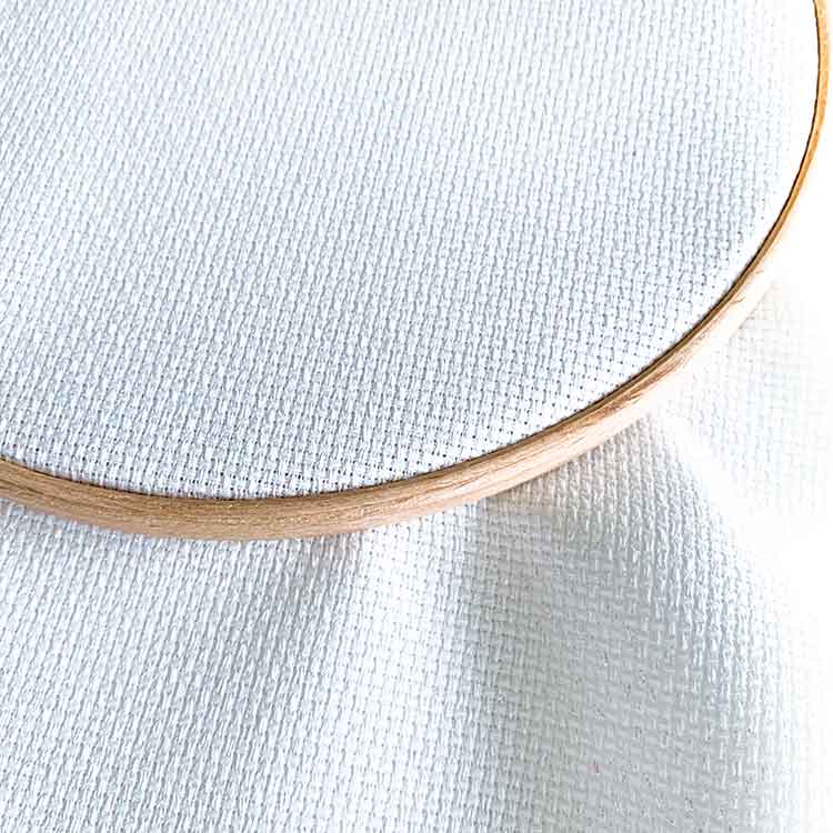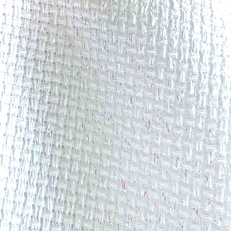 Aida 14 Iridescent White kruissteek stof. Dit is de 100 x 110 cm (~40 x 44 inch) Aida 14 count kruissteek stof. De stof heeft een subtiele glinstering.