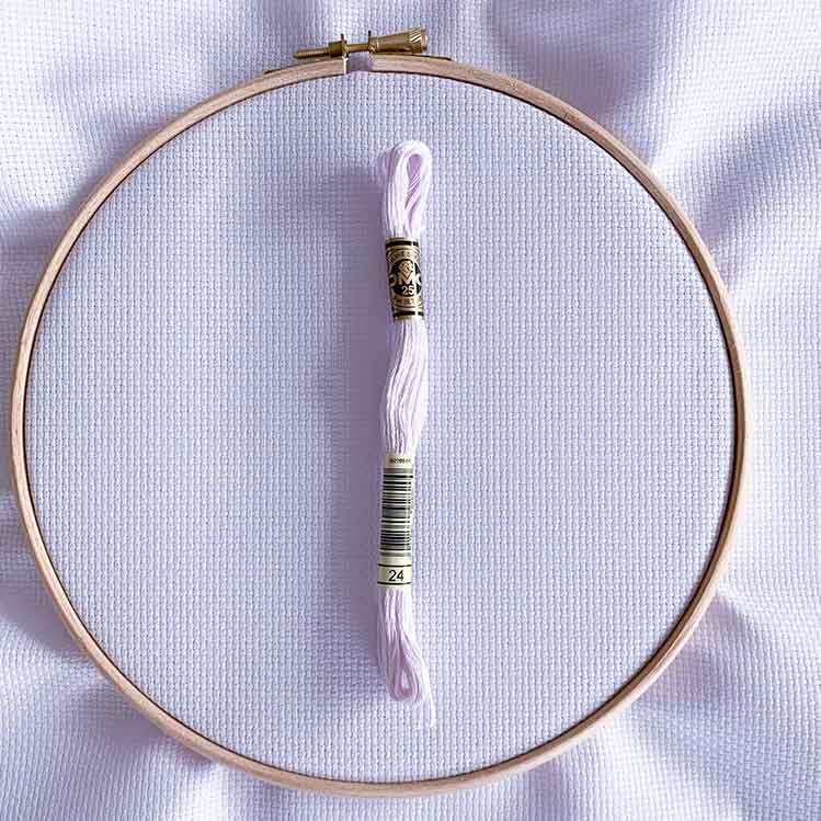 - De kleur zit dicht bij DMC kleur 24. Met een DMC kleurenkaart met echt garen kun je de kleur vergelijken en bijpassende kleuren borduurgaren vinden.